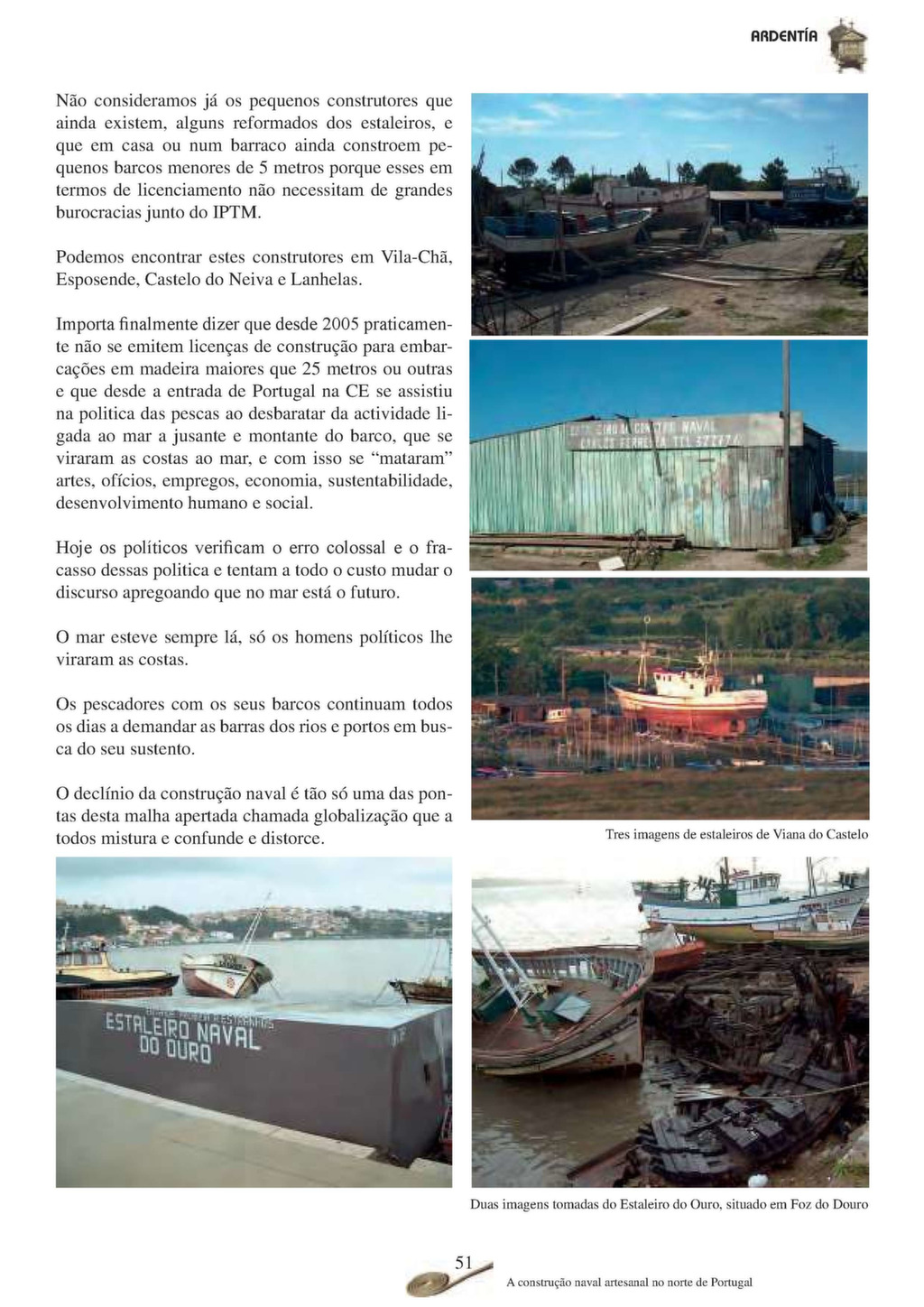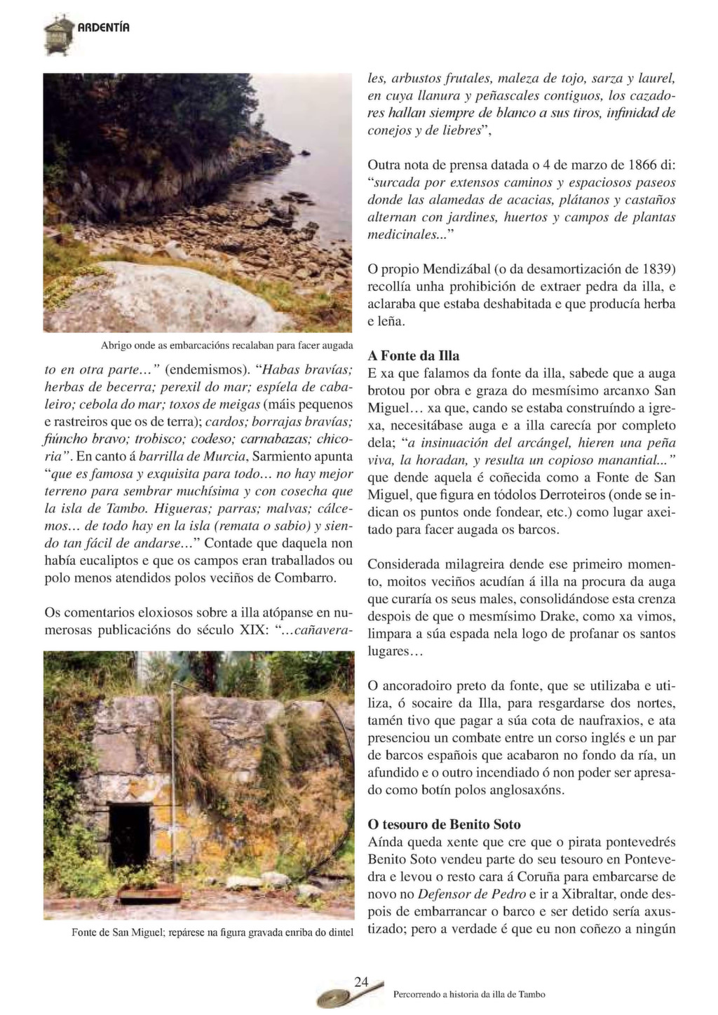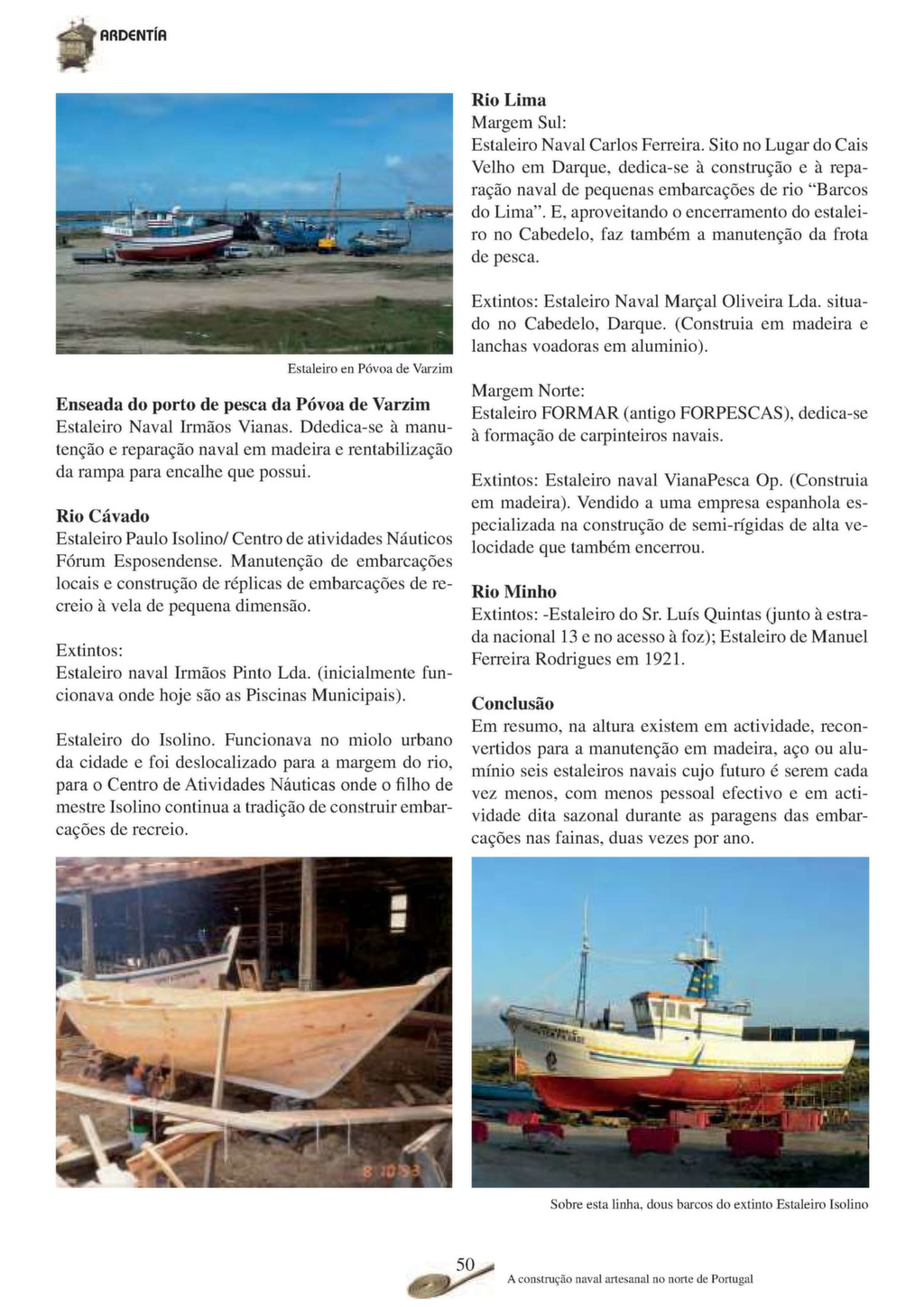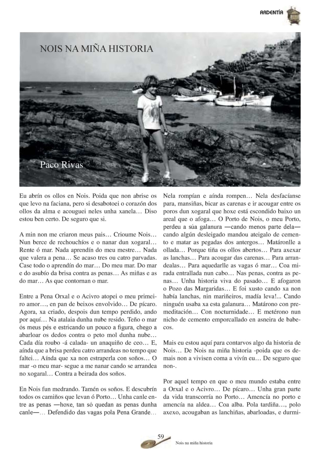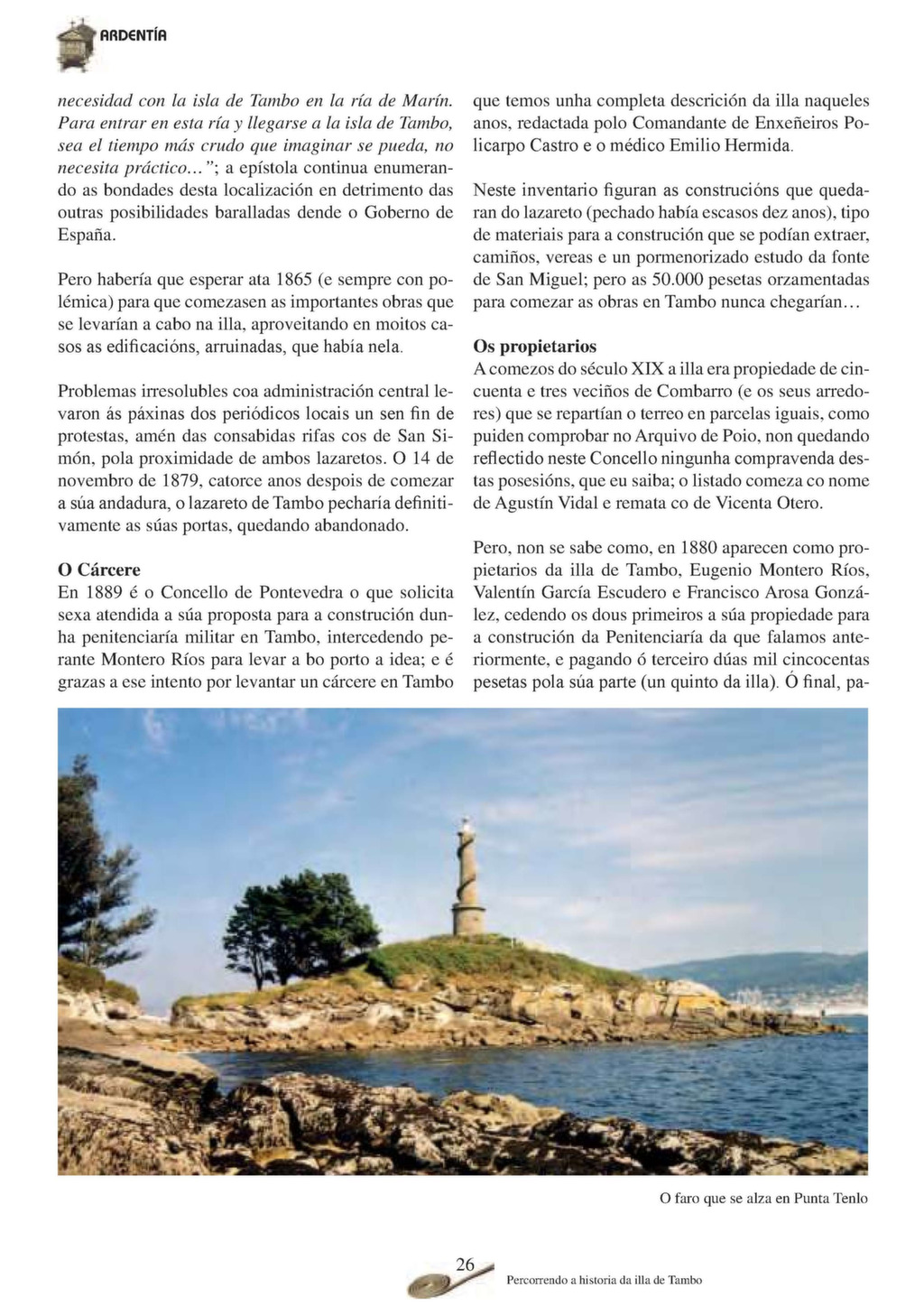 A Atalaia | A nova singradura de Ardentía, co patrón Luís Rei no Leme | Luís Rei e a revista Ardentía: unha experiencia impagábel de divulgación da nosa cultura marítima e fluvial | O mar; punto de encontro | Furtivos | Percorrendo a historia da illa de Tambo | Memoria das últimas embarcacións mariñeiras de vela en Combarro e na Ría de Pontevedra | O Penendo dos Ladróns; un novo xacemento paleolítico da comarca do Condado | Traíñas, xeitos, traiñeiras e tarrafas. A rendabilidade industrial contra a cultura mariñeira | As paisagens do sargaço do norte de Portugal | A pesca da balea en Galicia | Nois na miña memoria | Bolinando o mar de Ons na voz do señor Francisco | As salgaduras de Portocubelo | O Ecomuseo de Arxeriz | Que inchadiña branca vela | Letras na almadraba | Pregón da Festa da Lamprea de Cesures | Sino de Proa | As orixes da gamela galega e da masseira portuguesa | Lecturas para navegantes | Pintores do mar: Maruja Mallo | As que navegan. Crónica sentimental do XII Encontro de Embarcacións Tradicionais de Galicia