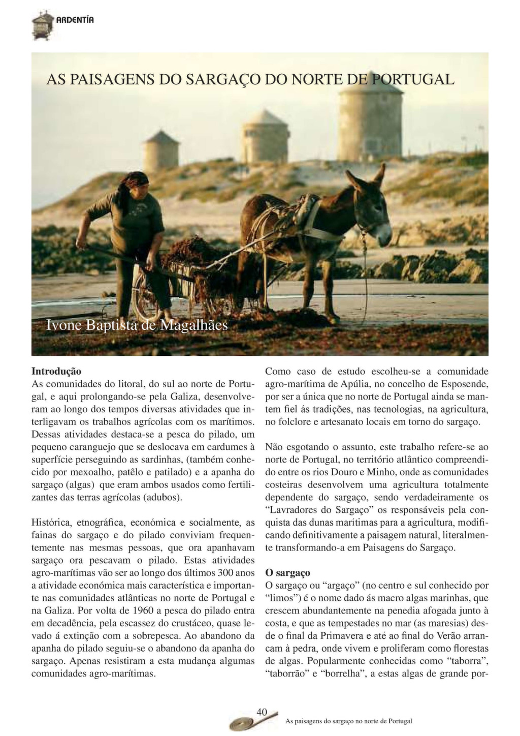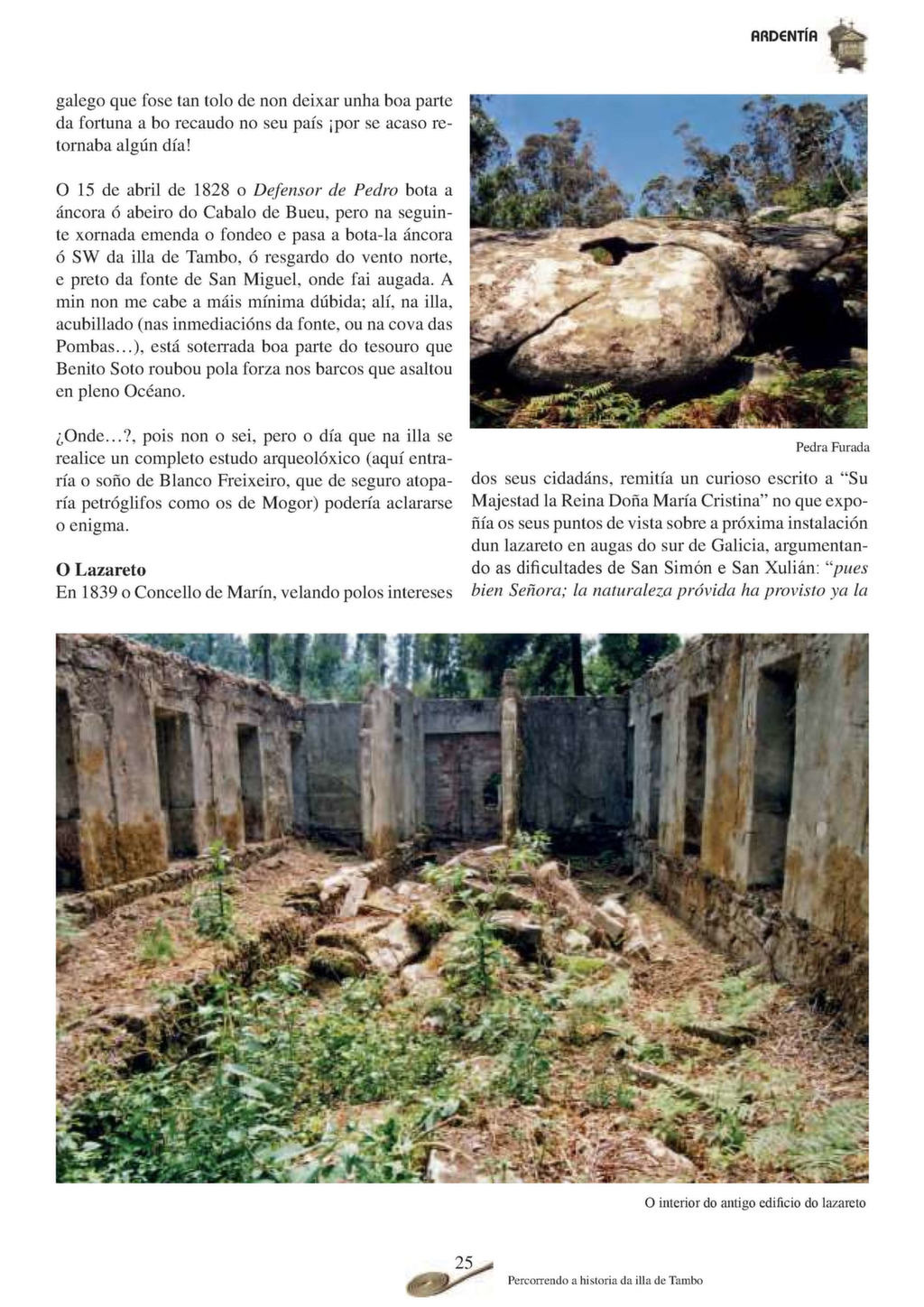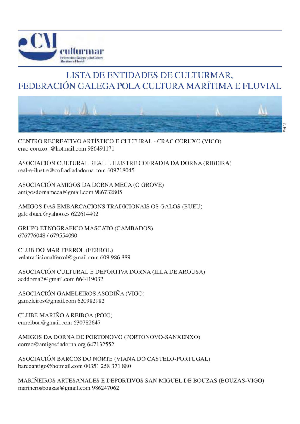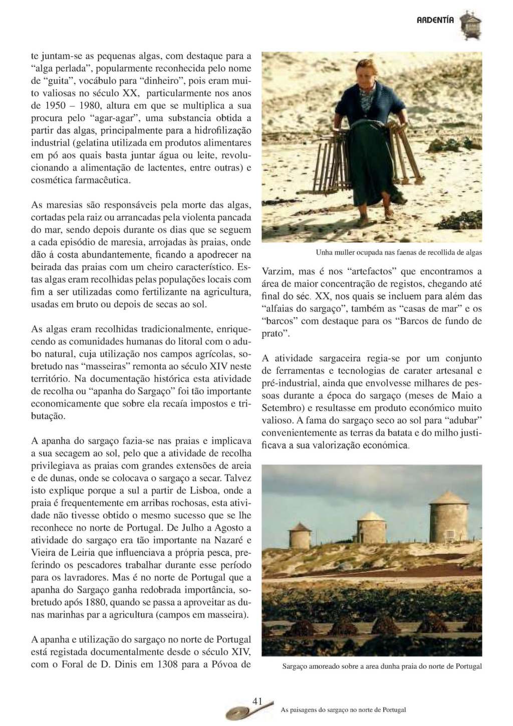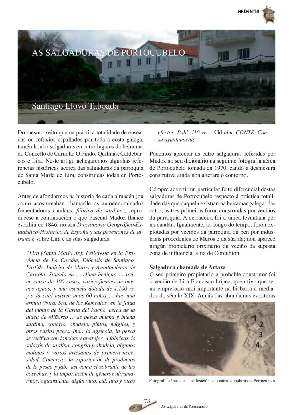 A Atalaia | A nova singradura de Ardentía, co patrón Luís Rei no Leme | Luís Rei e a revista Ardentía: unha experiencia impagábel de divulgación da nosa cultura marítima e fluvial | O mar; punto de encontro | Furtivos | Percorrendo a historia da illa de Tambo | Memoria das últimas embarcacións mariñeiras de vela en Combarro e na Ría de Pontevedra | O Penendo dos Ladróns; un novo xacemento paleolítico da comarca do Condado | Traíñas, xeitos, traiñeiras e tarrafas. A rendabilidade industrial contra a cultura mariñeira | As paisagens do sargaço do norte de Portugal | A pesca da balea en Galicia | Nois na miña memoria | Bolinando o mar de Ons na voz do señor Francisco | As salgaduras de Portocubelo | O Ecomuseo de Arxeriz | Que inchadiña branca vela | Letras na almadraba | Pregón da Festa da Lamprea de Cesures | Sino de Proa | As orixes da gamela galega e da masseira portuguesa | Lecturas para navegantes | Pintores do mar: Maruja Mallo | As que navegan. Crónica sentimental do XII Encontro de Embarcacións Tradicionais de Galicia