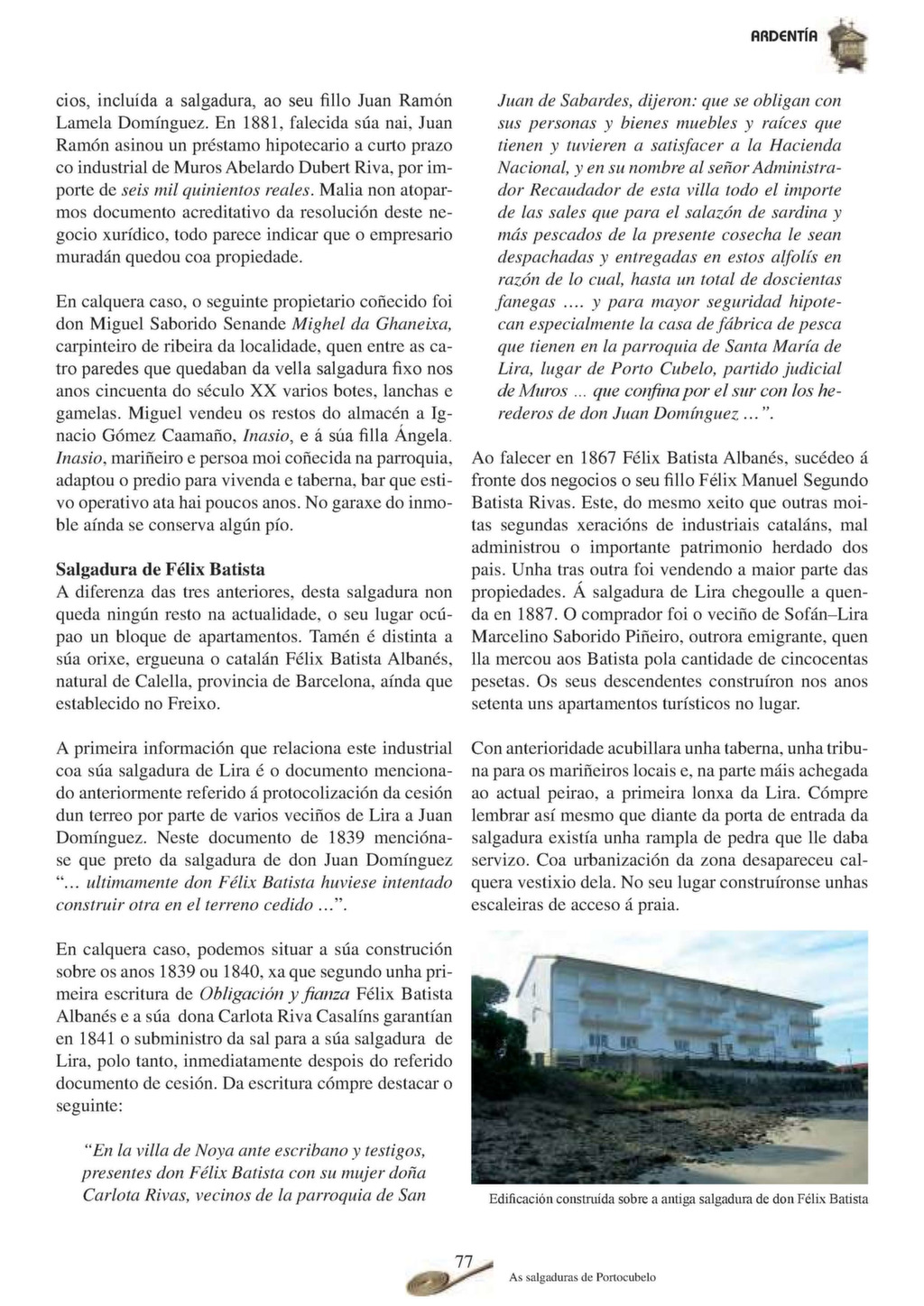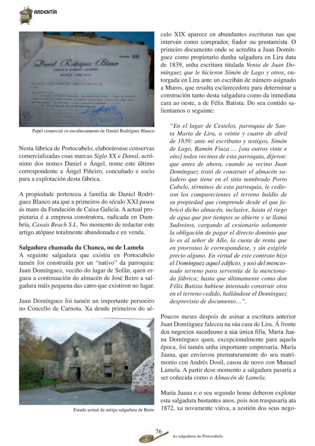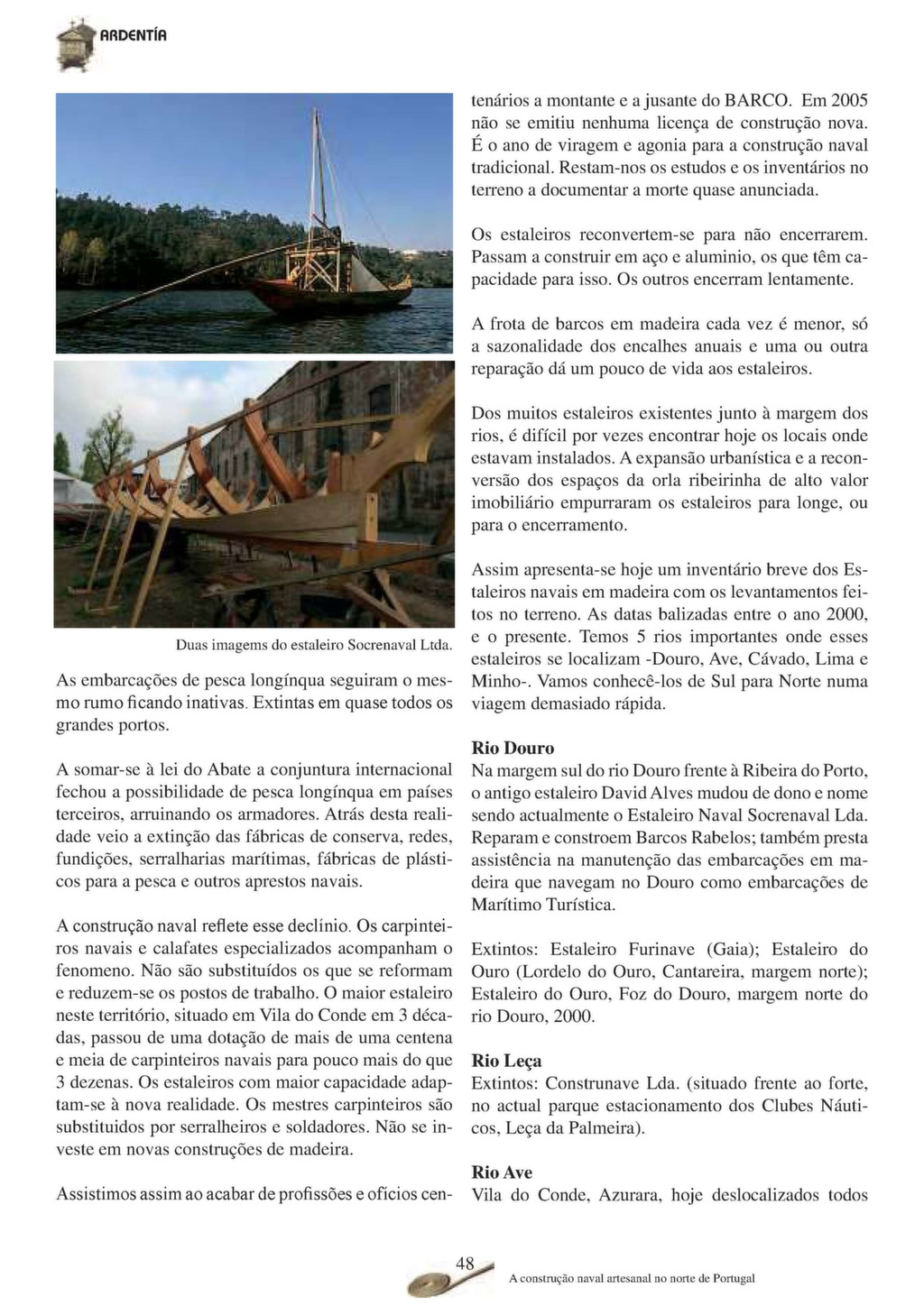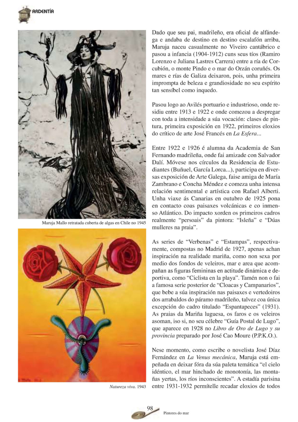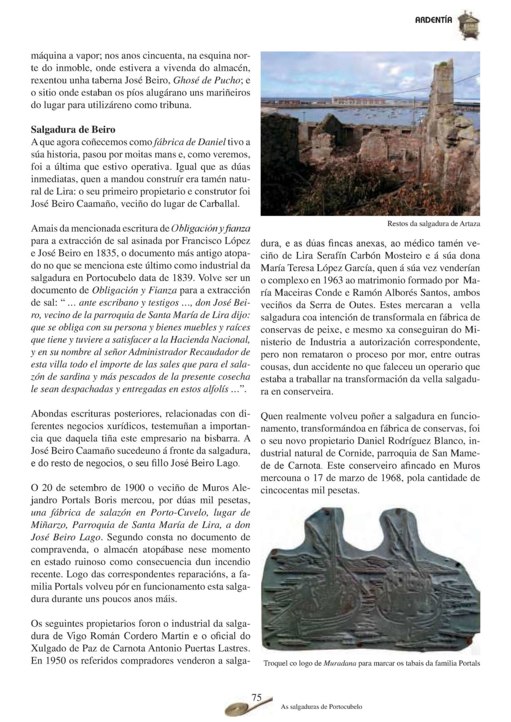 A Atalaia | A nova singradura de Ardentía, co patrón Luís Rei no Leme | Luís Rei e a revista Ardentía: unha experiencia impagábel de divulgación da nosa cultura marítima e fluvial | O mar; punto de encontro | Furtivos | Percorrendo a historia da illa de Tambo | Memoria das últimas embarcacións mariñeiras de vela en Combarro e na Ría de Pontevedra | O Penendo dos Ladróns; un novo xacemento paleolítico da comarca do Condado | Traíñas, xeitos, traiñeiras e tarrafas. A rendabilidade industrial contra a cultura mariñeira | As paisagens do sargaço do norte de Portugal | A pesca da balea en Galicia | Nois na miña memoria | Bolinando o mar de Ons na voz do señor Francisco | As salgaduras de Portocubelo | O Ecomuseo de Arxeriz | Que inchadiña branca vela | Letras na almadraba | Pregón da Festa da Lamprea de Cesures | Sino de Proa | As orixes da gamela galega e da masseira portuguesa | Lecturas para navegantes | Pintores do mar: Maruja Mallo | As que navegan. Crónica sentimental do XII Encontro de Embarcacións Tradicionais de Galicia