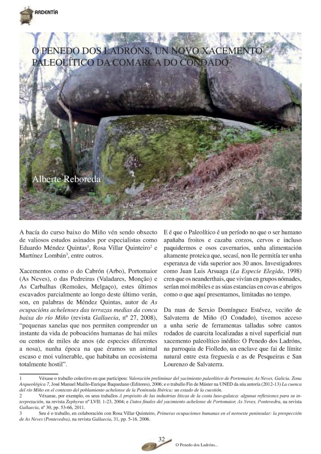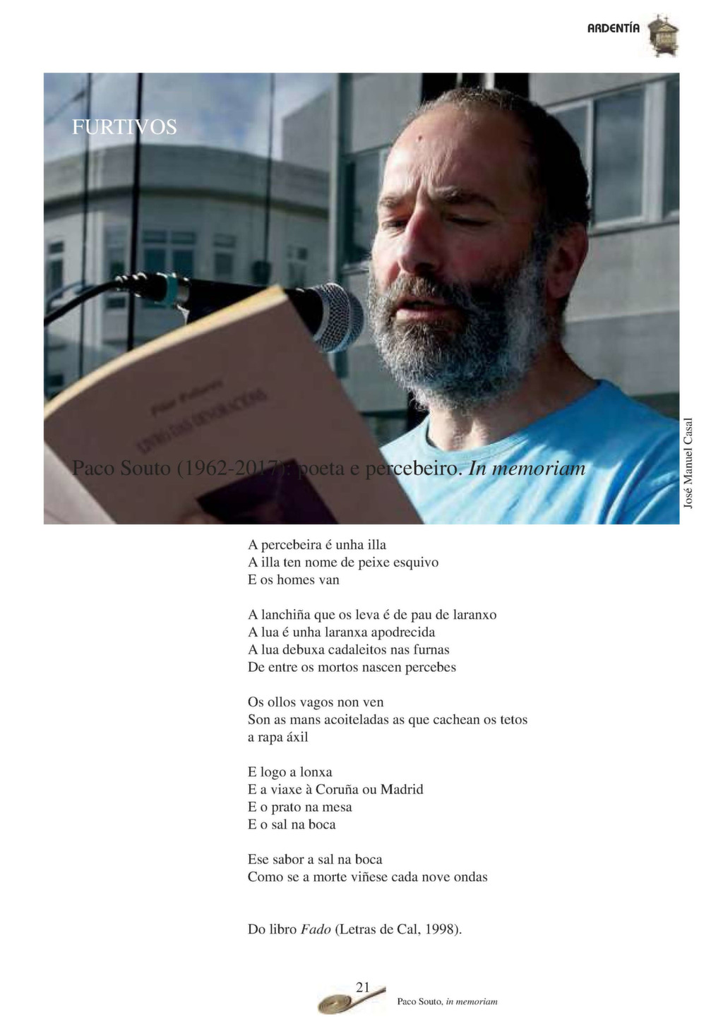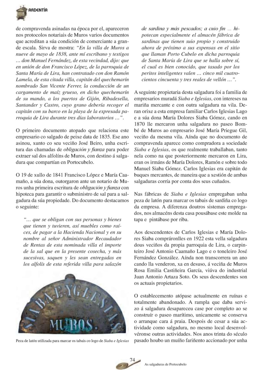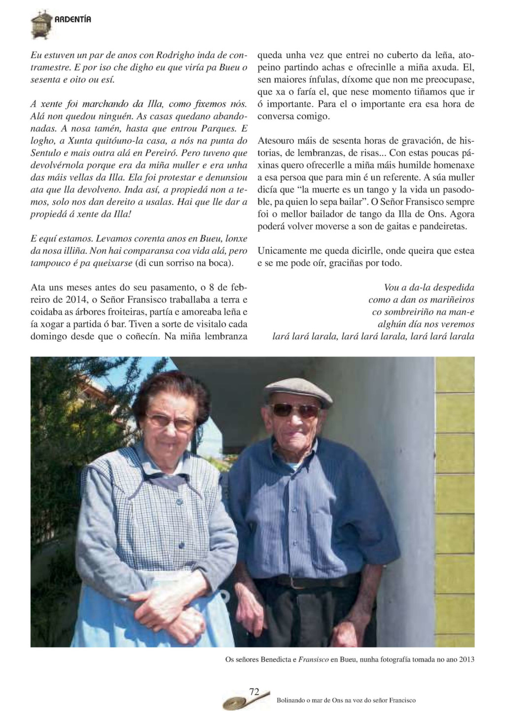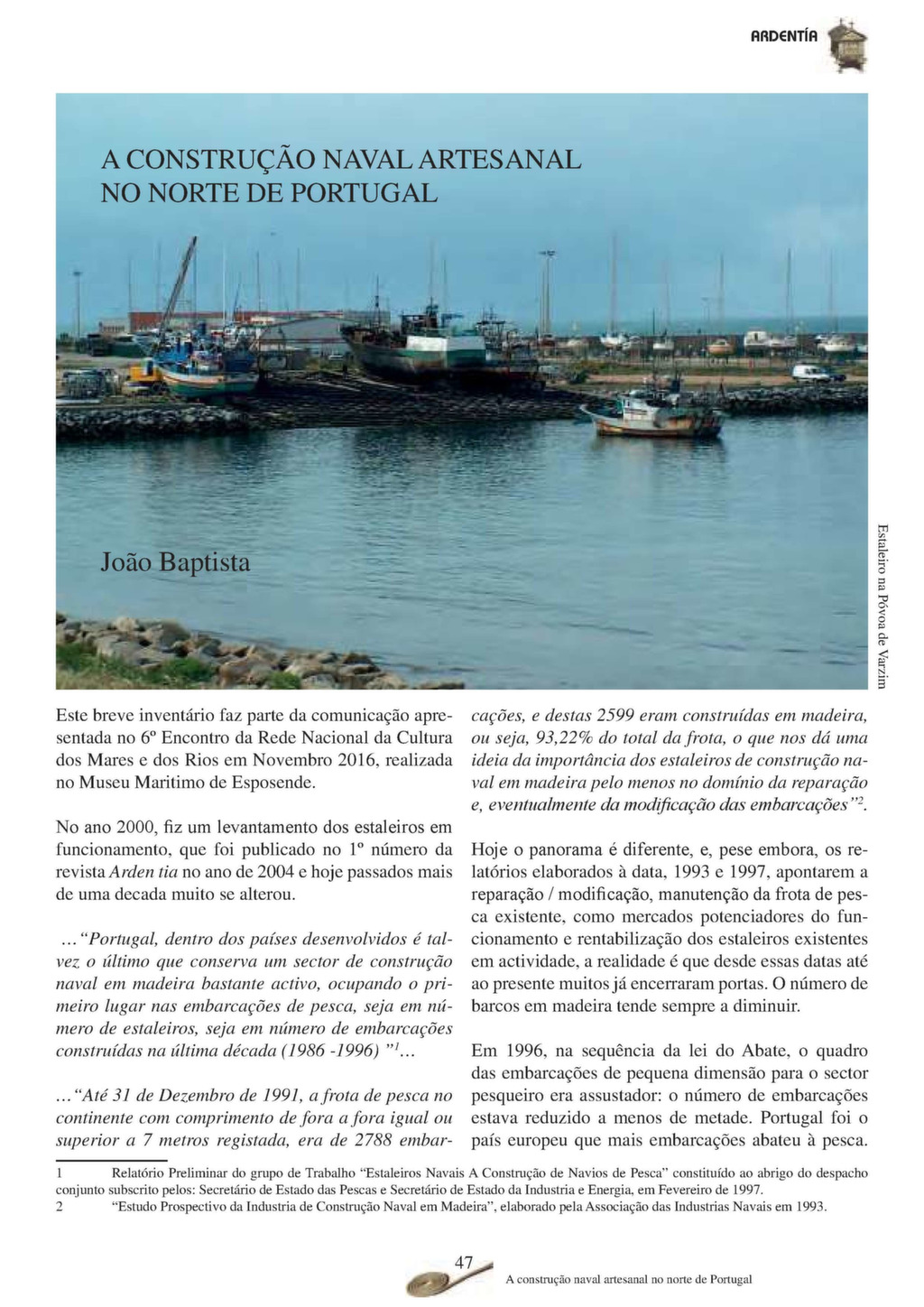 A Atalaia | A nova singradura de Ardentía, co patrón Luís Rei no Leme | Luís Rei e a revista Ardentía: unha experiencia impagábel de divulgación da nosa cultura marítima e fluvial | O mar; punto de encontro | Furtivos | Percorrendo a historia da illa de Tambo | Memoria das últimas embarcacións mariñeiras de vela en Combarro e na Ría de Pontevedra | O Penendo dos Ladróns; un novo xacemento paleolítico da comarca do Condado | Traíñas, xeitos, traiñeiras e tarrafas. A rendabilidade industrial contra a cultura mariñeira | As paisagens do sargaço do norte de Portugal | A pesca da balea en Galicia | Nois na miña memoria | Bolinando o mar de Ons na voz do señor Francisco | As salgaduras de Portocubelo | O Ecomuseo de Arxeriz | Que inchadiña branca vela | Letras na almadraba | Pregón da Festa da Lamprea de Cesures | Sino de Proa | As orixes da gamela galega e da masseira portuguesa | Lecturas para navegantes | Pintores do mar: Maruja Mallo | As que navegan. Crónica sentimental do XII Encontro de Embarcacións Tradicionais de Galicia