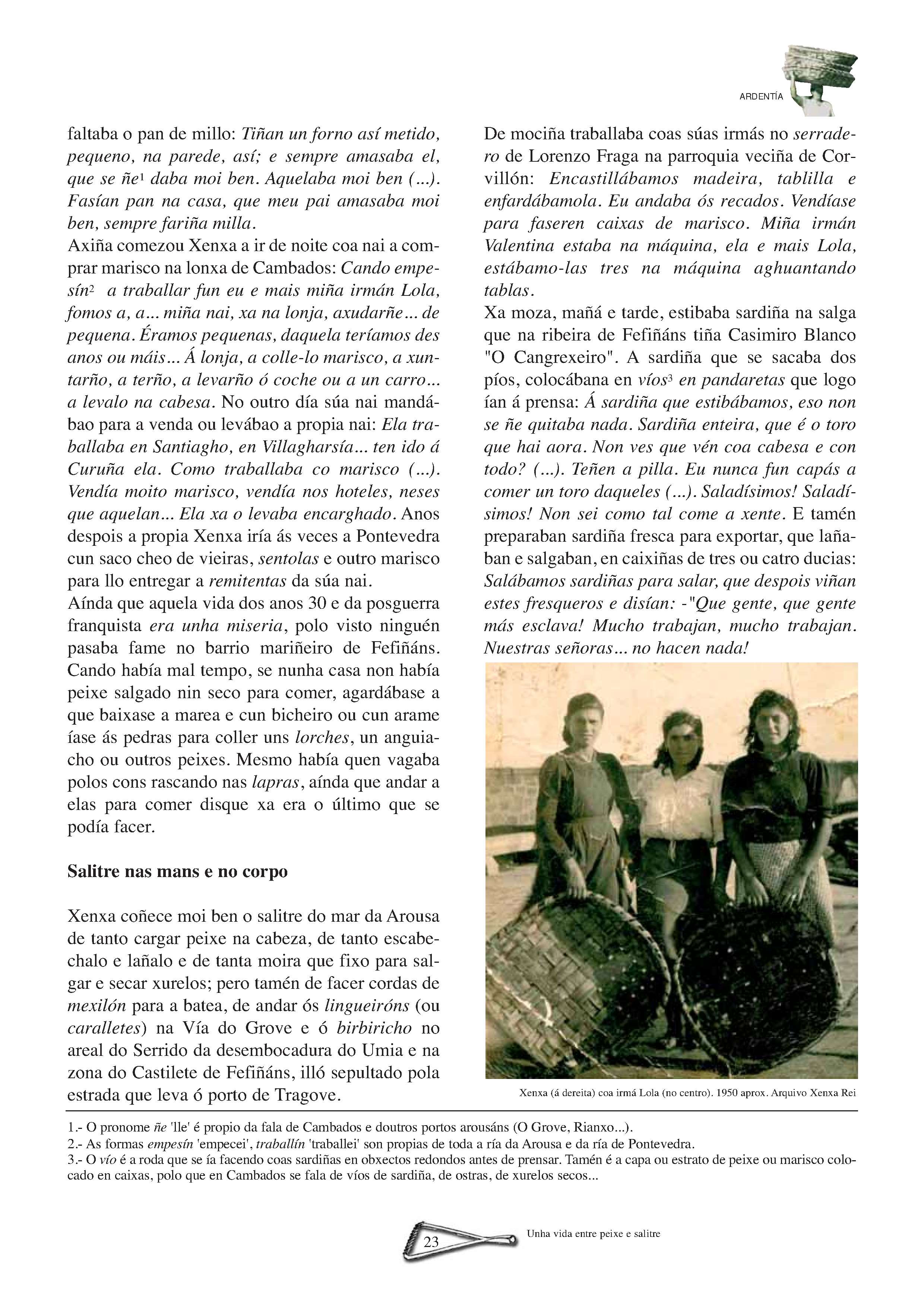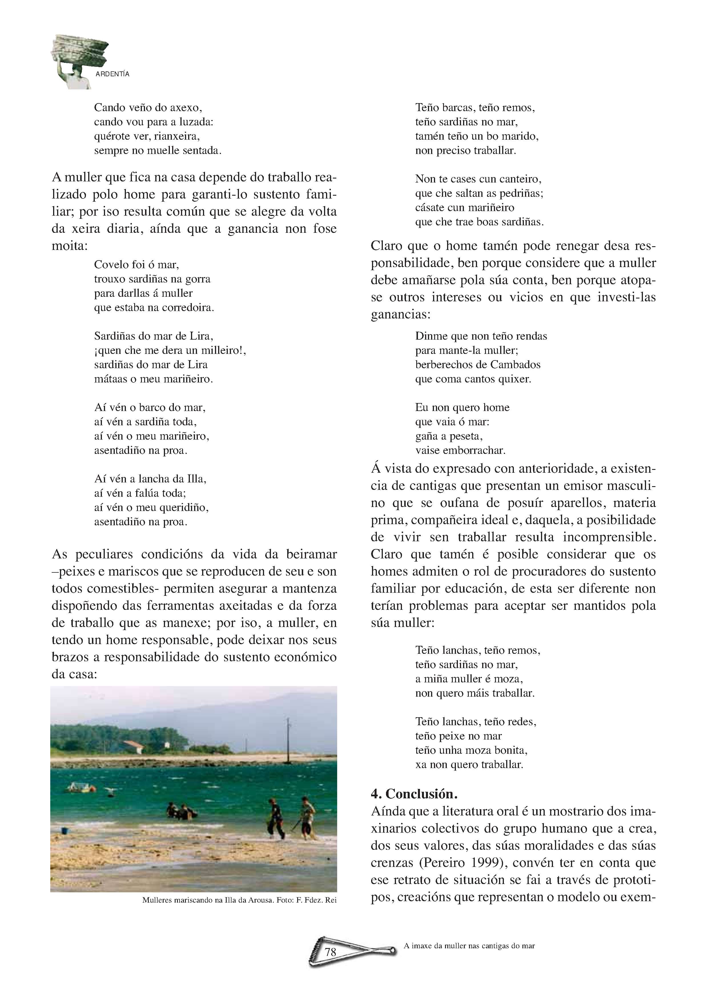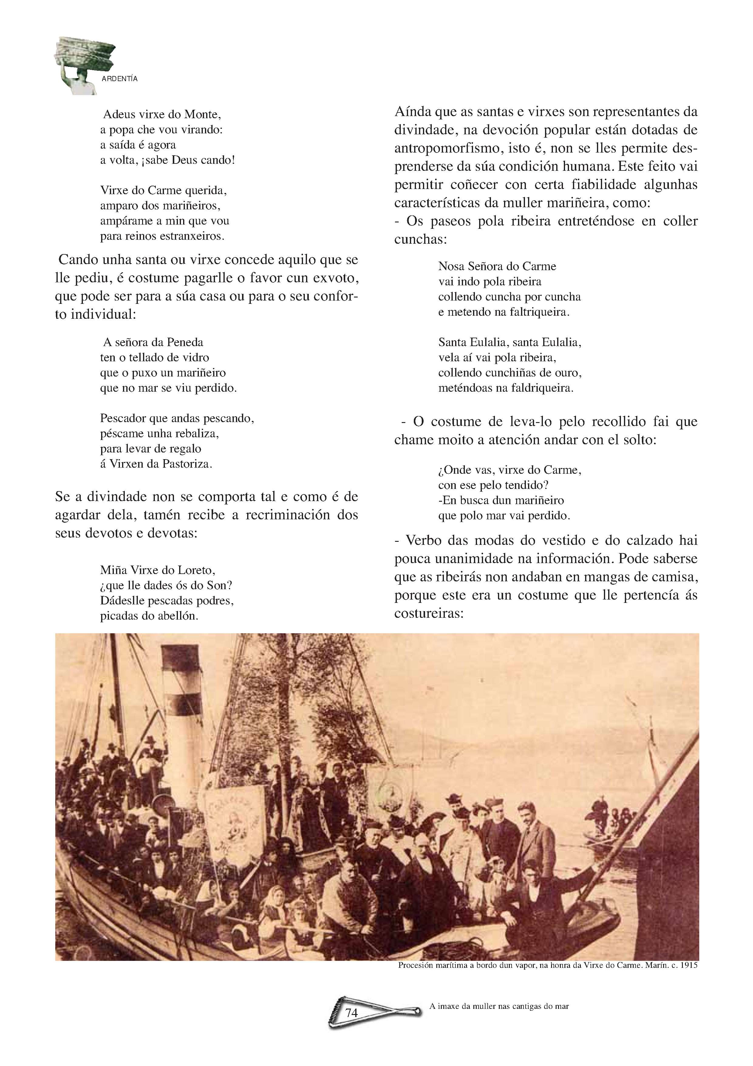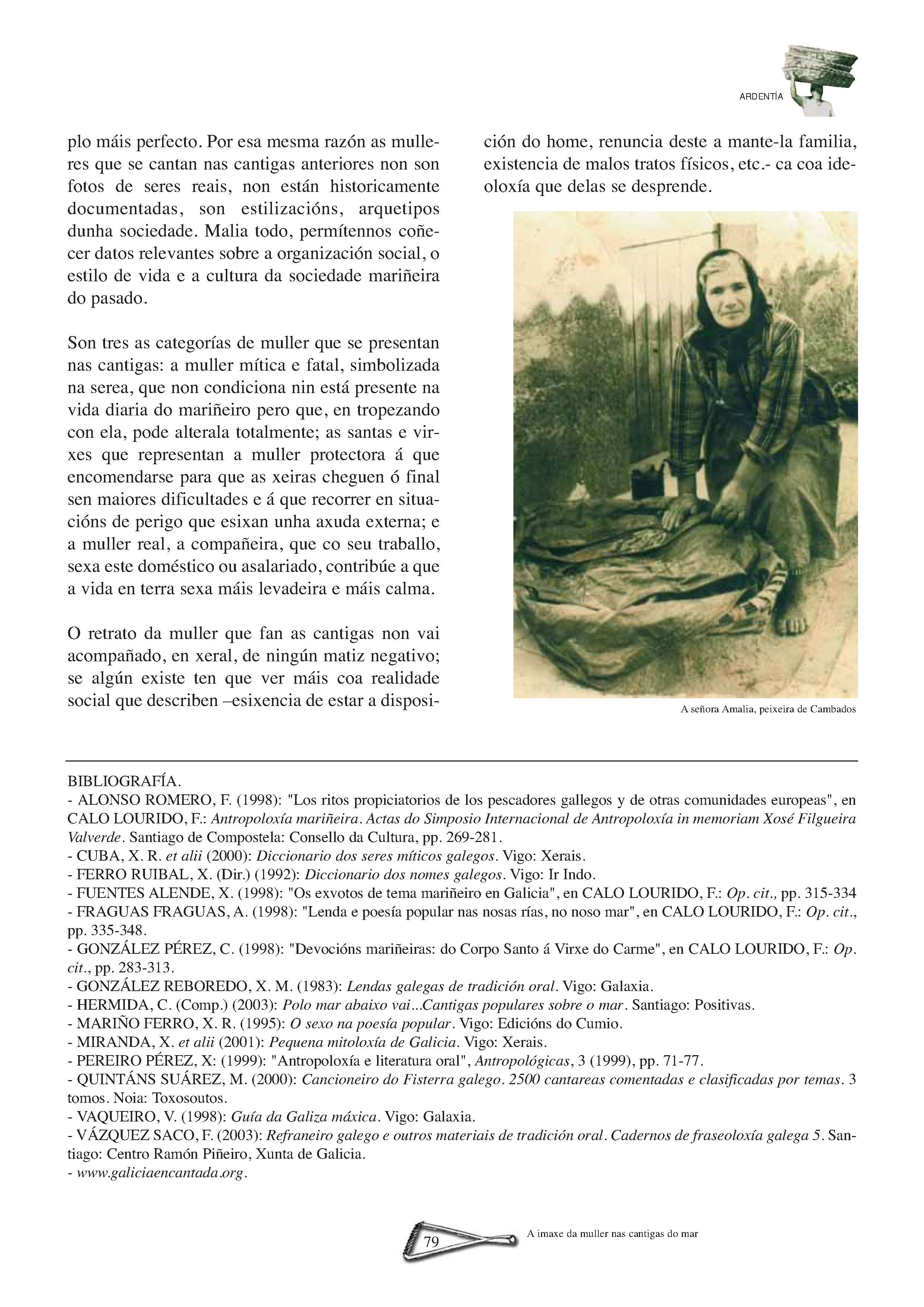 A Sara, precebeira na Illa de Ons | A Atalaia | VIII Encontro de Embarcacións Tradicionais de Galicia. Ferrol, 5, 6, 7 e 8 de xullo de 2007 | Brest 2008 | Realidade e perspectivas do traballo feminino no mundo do mar | Coa fortaleza dos cantís. Aquelas mulleres do mar de Ferrolterra e Ortegal | Unha vida entre peixe e salitre do mar da Arousa | As barreiras teñen nome de muller | As Xulianas de Bueu. Unha saga de subhastadoras de peixe | Sálvora: Illa das mulleres salvadoras | Mulheres do mar português. Ivone Baptista de Magalhães | Entre os penedos do Narla | Bañistas labregas no mar galego de onte | O rasto: A América dos que quedamos.(Memoria de Manuel Parada Mascato) | Un testemuño sobre as mulleres armadoras no mar galego | A imaxe da muller nas cantigas do mar | Letras na almadraba. “A mariñeira de Quilmas” | Sino de proa: Jacobo Barros e a épica da pesca de altura | Sino de proa: Submarinos, naufraxios e instinto de supervivencia | Sino de proa: Versos con sabor a salitre | Pintoras do Mar: Balbina López Santos