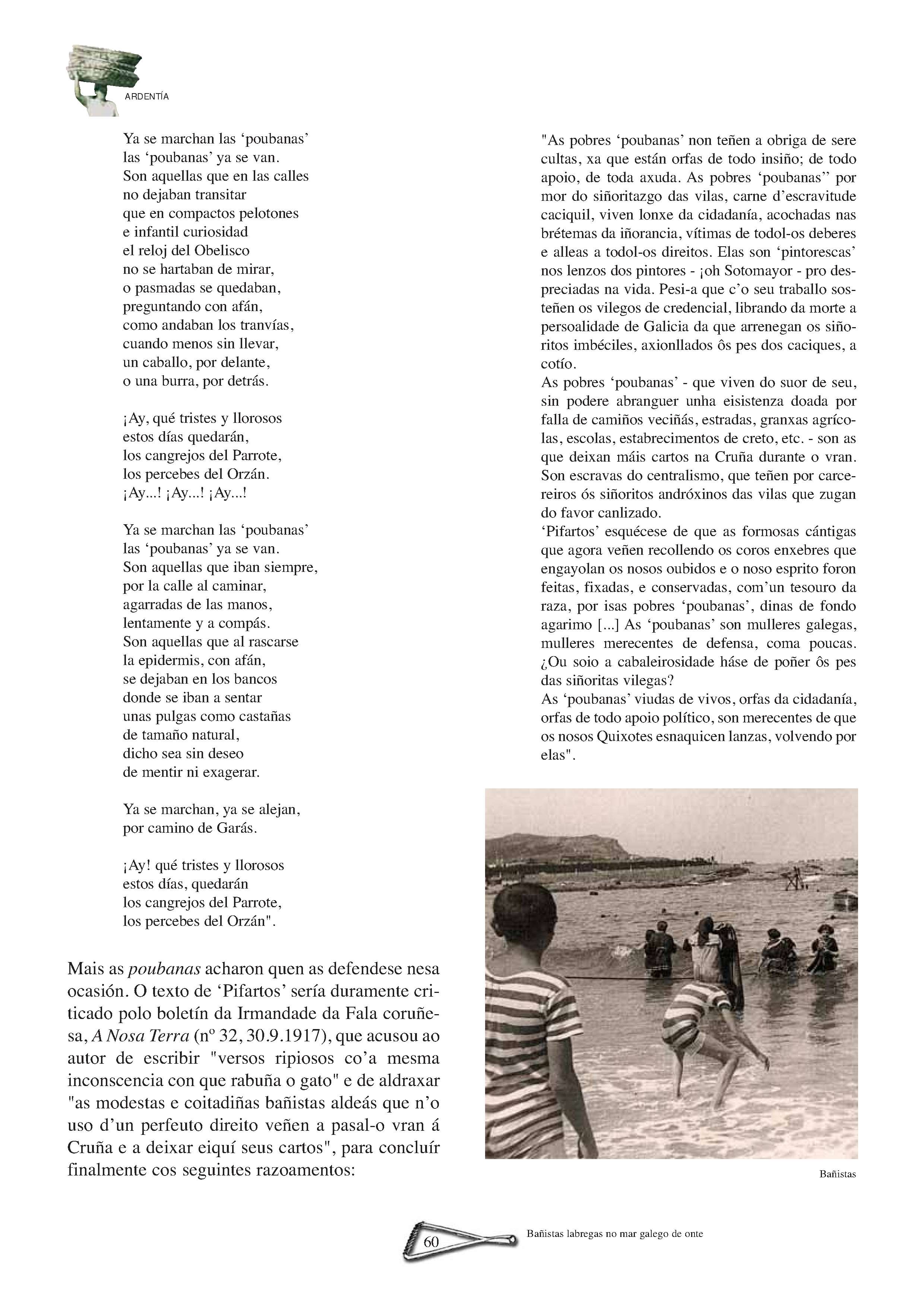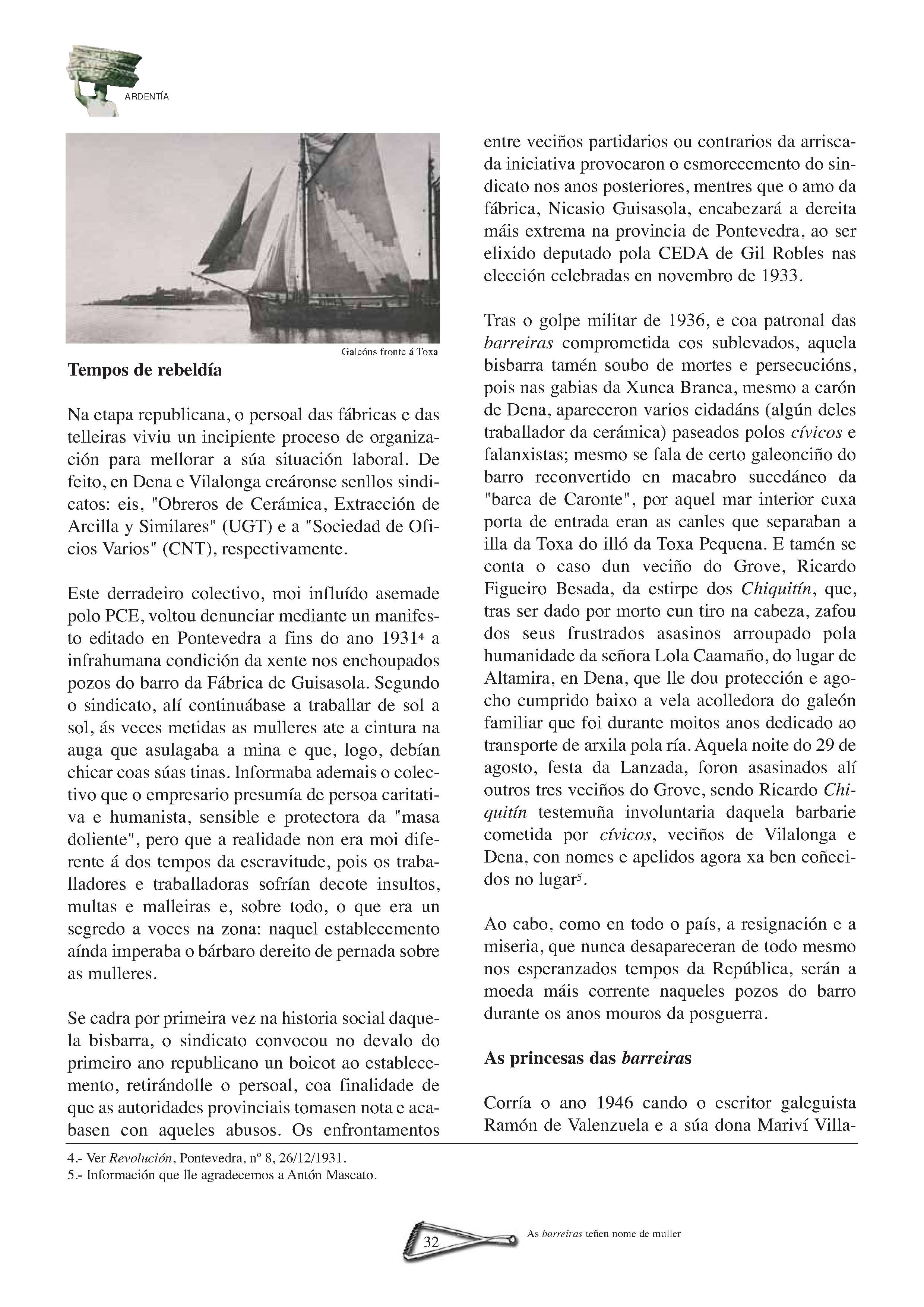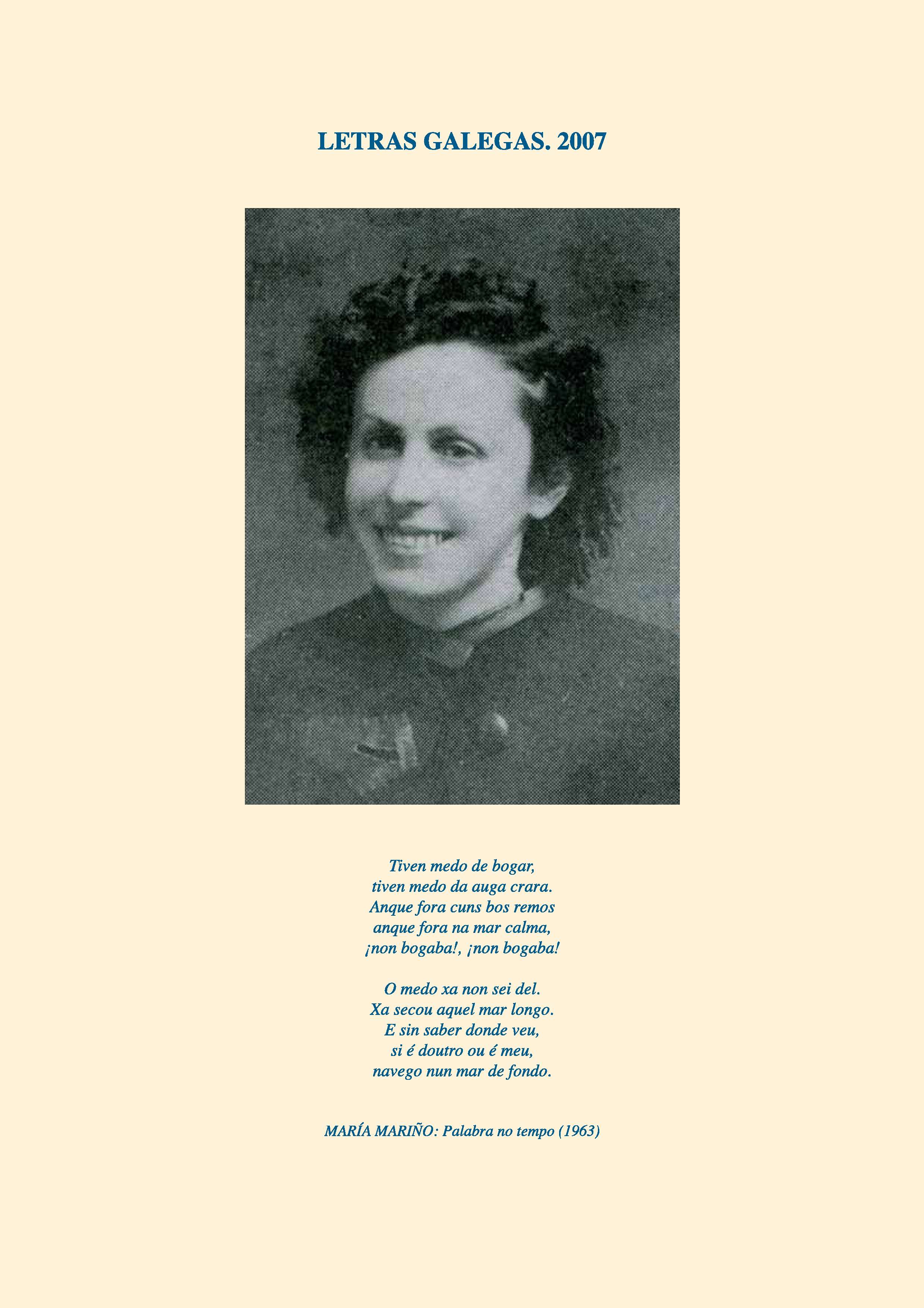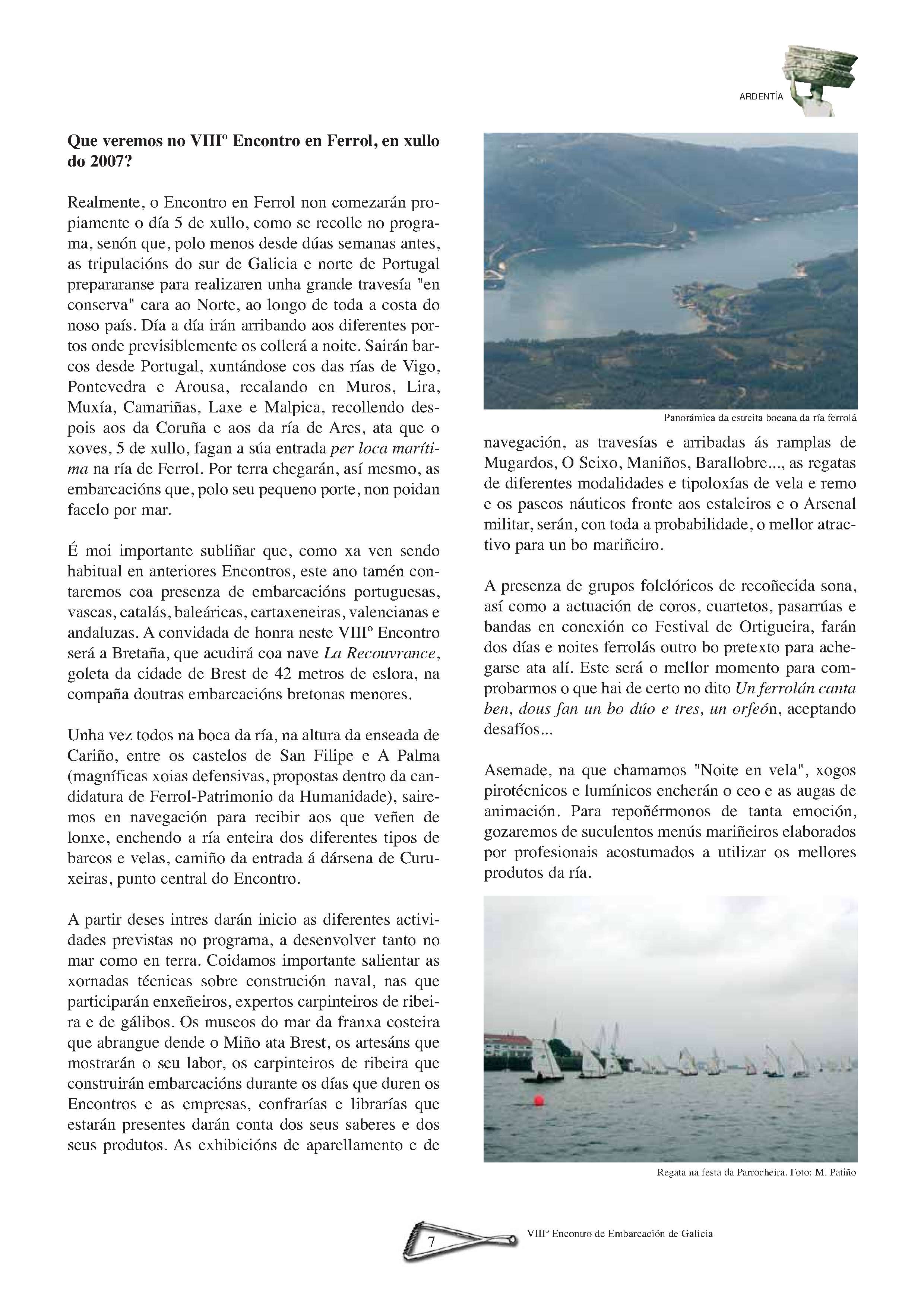 A Sara, precebeira na Illa de Ons | A Atalaia | VIII Encontro de Embarcacións Tradicionais de Galicia. Ferrol, 5, 6, 7 e 8 de xullo de 2007 | Brest 2008 | Realidade e perspectivas do traballo feminino no mundo do mar | Coa fortaleza dos cantís. Aquelas mulleres do mar de Ferrolterra e Ortegal | Unha vida entre peixe e salitre do mar da Arousa | As barreiras teñen nome de muller | As Xulianas de Bueu. Unha saga de subhastadoras de peixe | Sálvora: Illa das mulleres salvadoras | Mulheres do mar português. Ivone Baptista de Magalhães | Entre os penedos do Narla | Bañistas labregas no mar galego de onte | O rasto: A América dos que quedamos.(Memoria de Manuel Parada Mascato) | Un testemuño sobre as mulleres armadoras no mar galego | A imaxe da muller nas cantigas do mar | Letras na almadraba. “A mariñeira de Quilmas” | Sino de proa: Jacobo Barros e a épica da pesca de altura | Sino de proa: Submarinos, naufraxios e instinto de supervivencia | Sino de proa: Versos con sabor a salitre | Pintoras do Mar: Balbina López Santos