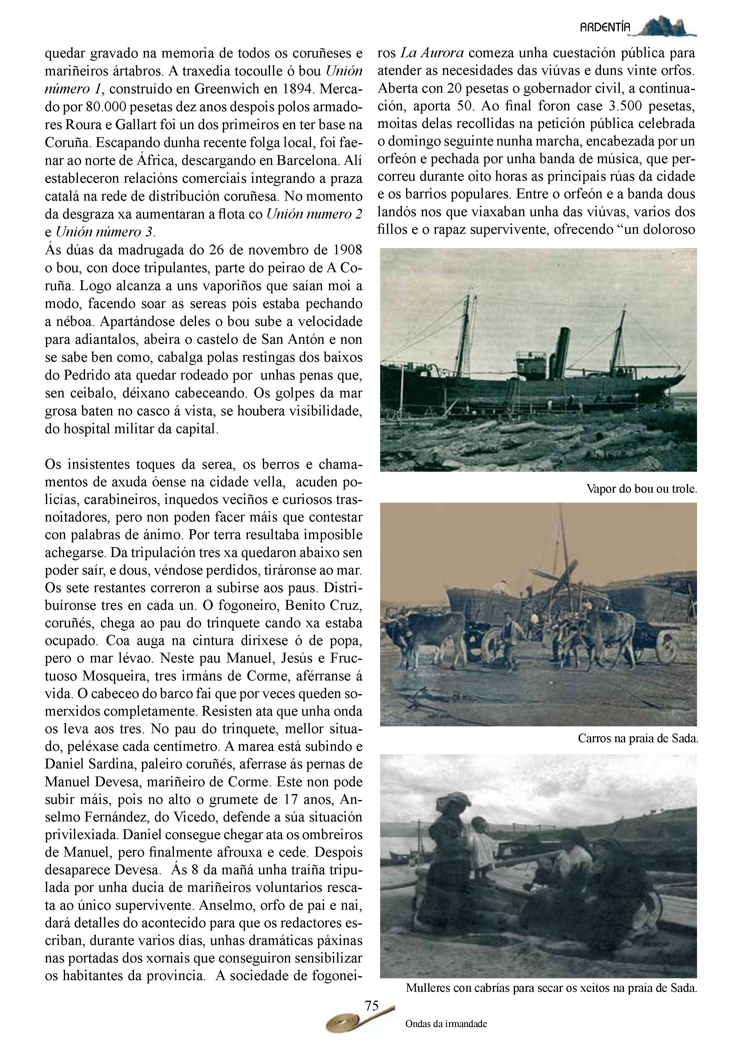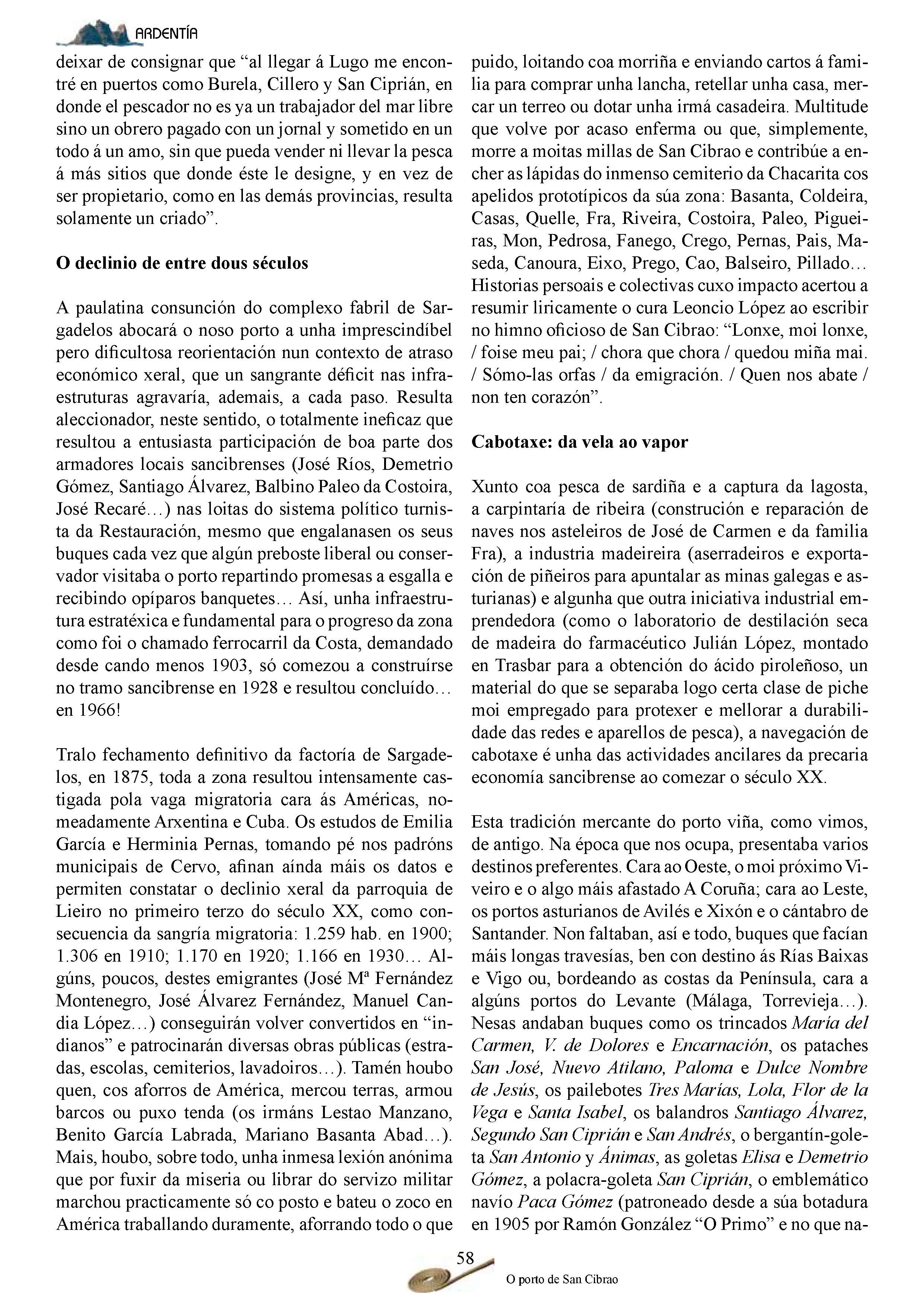 A Atalaia. Luís Rei | A Plataforma para o Estatuto Jurídico das Embarcações históricas e tradicionais | Carril 2011. Vinte anos recuperando patrimonio | Cortegada | A Illa de Ons, unha mestura de terra e mar | Lendas, realidades e triunfos da Illa de Arousa | Se o vello Simbad volvese ás illas navegaría ata o norte de Galiza | Ínsuas | Planos e cartas | Memorias do Salgueirón | Massó ou a loita dun pobo | O porto de San Cibrao (Cervo) ao longo da historia | Naseiros | Ondas da irmandade. Memoria do asociacionismo mariñeiro sadense | Daniel Pazó Vila. Rendido, desarmado, pero nunca vencido | Crónicas muradás |