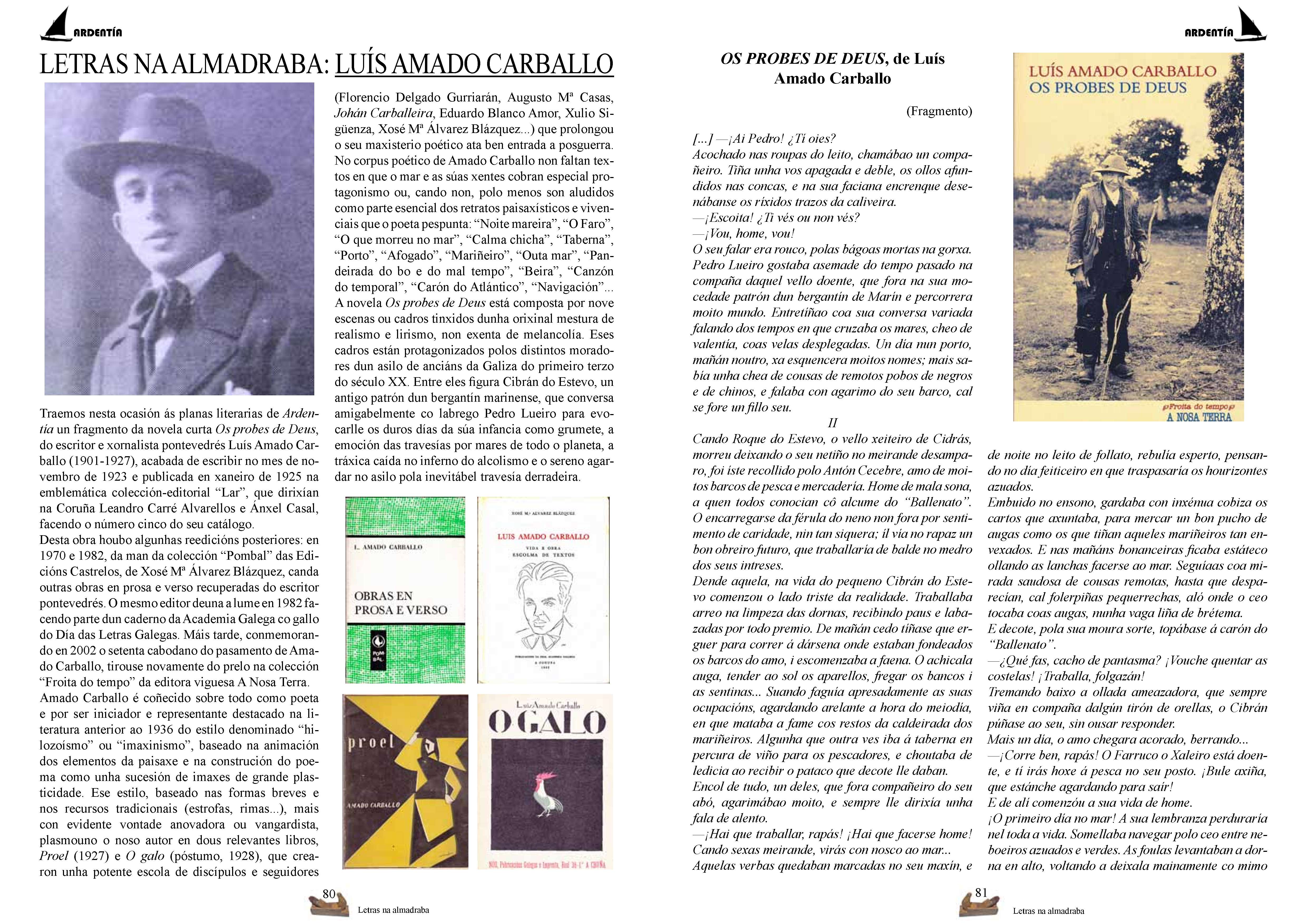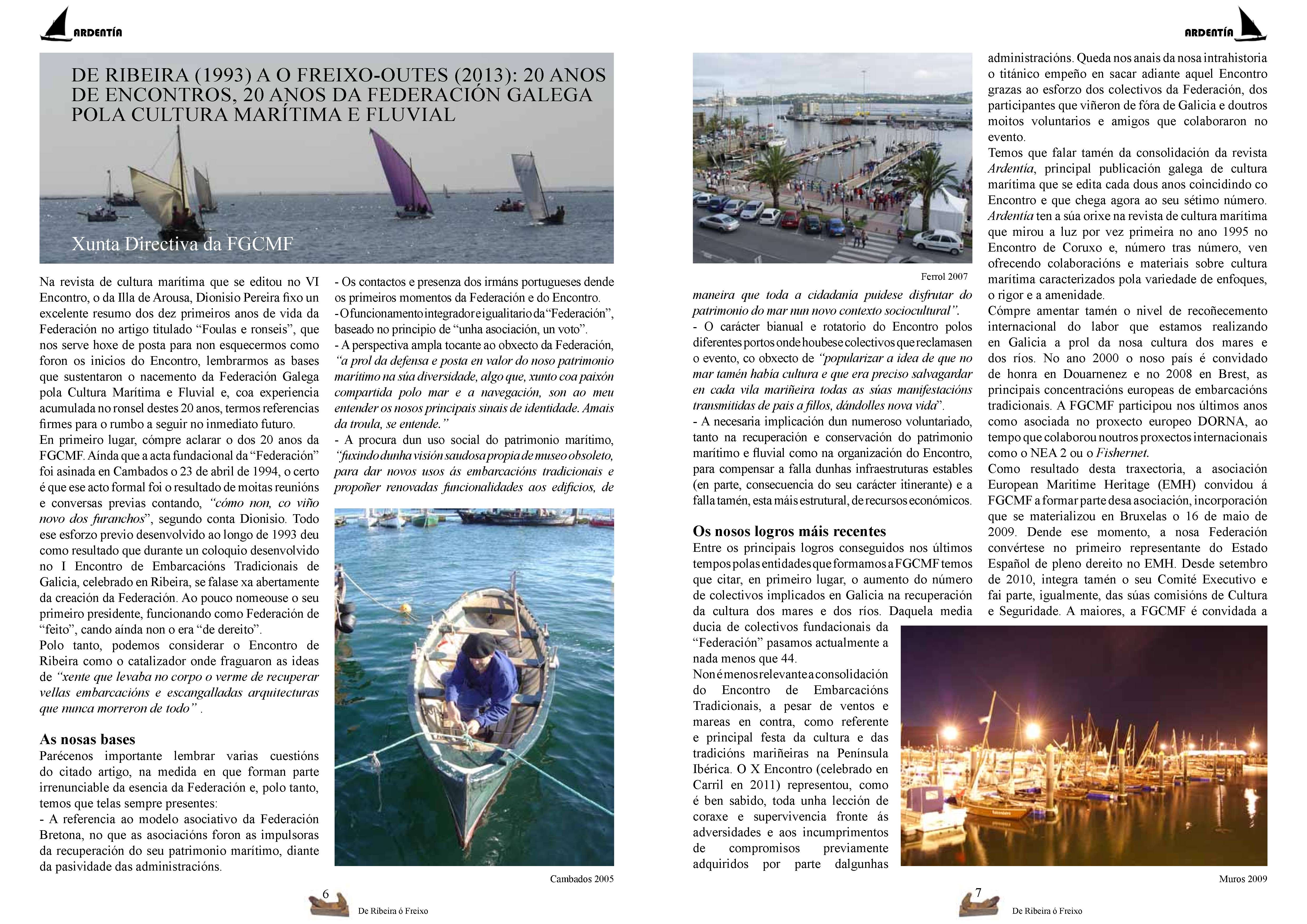A Atalaia | Vinte anos de Encontros | Outes por descubrir | Paisaxes de mar nas vilas medievais de Mueros e Noia | A carpintaría de ribeira e a construción naval no concello de Outes | Motoras do Freixo na Ría de Ferrol | Un can contoume unha historia | O último resistente da beira do mar | As peixeiras de Esposende | Illas de San Bartolomeu, Toralla e San Simón: contos, metáforas e mentiras | Delmiro Touza: “A vida é un vendaval” | O Rego do Batán | Iconografía mariñeira en Santa María de Caldas | Letras na almadraba | Sino de Proa | Lecturas para navegantes | Pintores do mar: Prudencio Canitrot | Carril 2011 | “Na outra banda do mar constrúen o navío