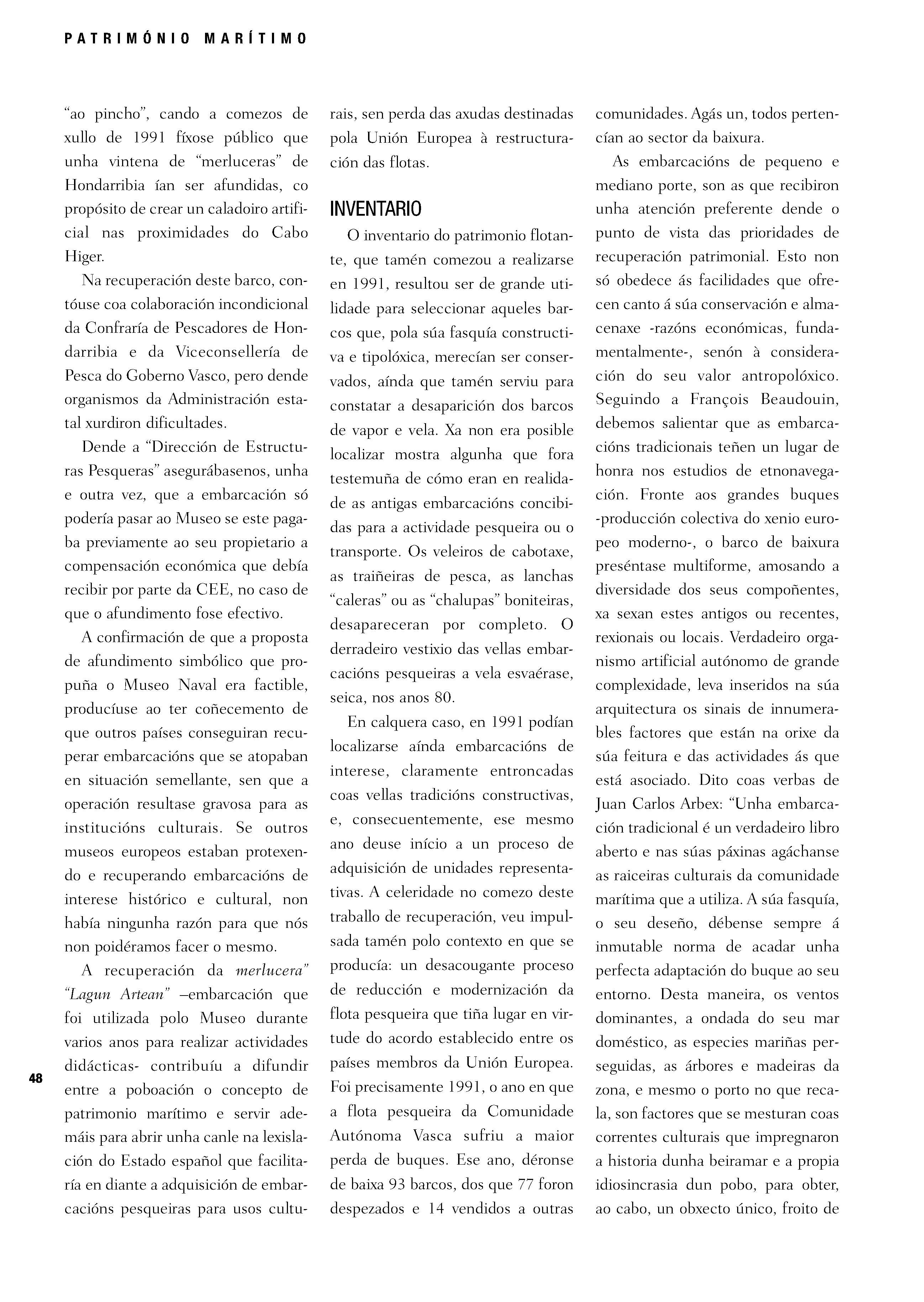 Mascarón de proa | Os Rapetóns de Carrillo | Memórias dun pescador | Os Cantineiro de Vilanova | Mares de saudade | Bucetas e galeóns recalan na Reiboa | Roteiros marítimos celtas: os monxes navegantes. Xénese do Curragh “Sant Efflam” Cara Galiza dende Euskadi | Os relatos das navegacións dos monxes celtas | Embarcações tradicionais à vela: a importância dos circuitos nacionais | Protección e conservación do patrimonio marítimo flotante no Pais Vasco | A pedra na cultura marítima de Galiza | A escola obradoiro “Mar de Vigo” unha aposta de futuro | Escola de navegación e aparellamento de embarcacións tradicionais | As razóns do fracaso dunha política de portos deportivos privados | A Atalaia